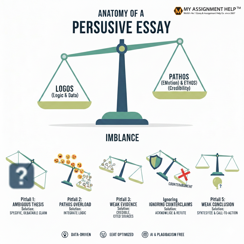 To encapsulate these points visually, imagine a balanced scale representing a perfectly persuasive essay. Each pitfall represents a factor that throws this scale off balance.